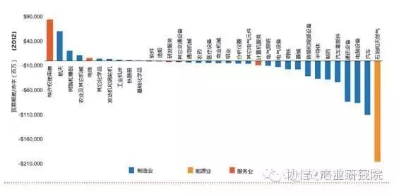 图 4 除了小部分例外,美国高端产业贸易逆差显著