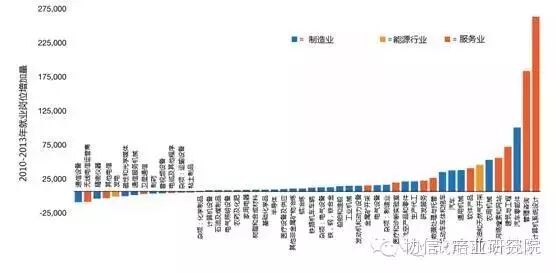 1980-2013年,美国高端产业产值年均增长5.4%,比美国经济年均增速高出30%左右。而且,自大衰退以来,美国高端产业无论是就业还是产值都急剧上升。与2010年相比,美国高端产业部门新增近百万就业机会,就业和产值增长率比其他经济部门分别高1.9倍和2.3倍。而作为高端产业中的重要部门,高端服务业首当其冲地导致了美国经济衰退后的就业激增,创造了近65%的新增就业岗位。例如,计算机系统设计单独产生了25万个新的就业机会。某些高端制造业,特别是那些运输设备制造业,在经历了数十年的亏损之后,还增加了数以千计的就业岗位。