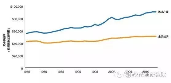 图 2 从1975年以来,美国高端产业平均收入增速是全美平均水平的约5倍